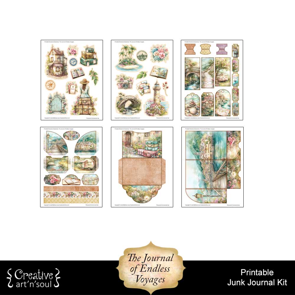 - 6 double sided junk journal pages (12 single pages) 11″ x 8.5″